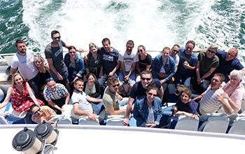 À bord du bateau Le Brestôa, les participants ont découvert la plus grande rade d’Europe, l’occasion également d’apprendre à se connaître et d’échanger sur leur métier et leurs attentes. Certains d’entre eux ont même eu la chance de croiser Randy, le dauphin solitaire, présent en rade de Brest !