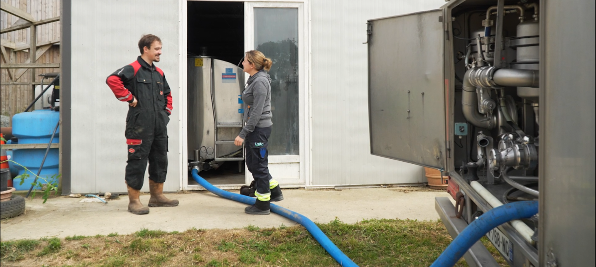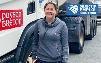 « J’ai d’abord été agent de quai en intérim, avant de signer un CDI au bout de six mois. Mon collègue de travail Jean-Philippe m’a proposé de devenir chauffeur laitier et c’est comme ça que je suis devenue son binôme. Nous collectons le lait sur la même tournée ».